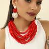 African Zircon Set Ethnic Style Multi-layer Handmade Wooden Beads Beaded Statement Necklace Earrings Women Party Accessories