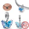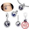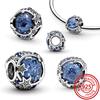 925 Sterling Copper Blue Glass Zircon Series Sparkling Pendant Simple Classic Beads Fit Original Pantaro Charms Bracelet Zircon