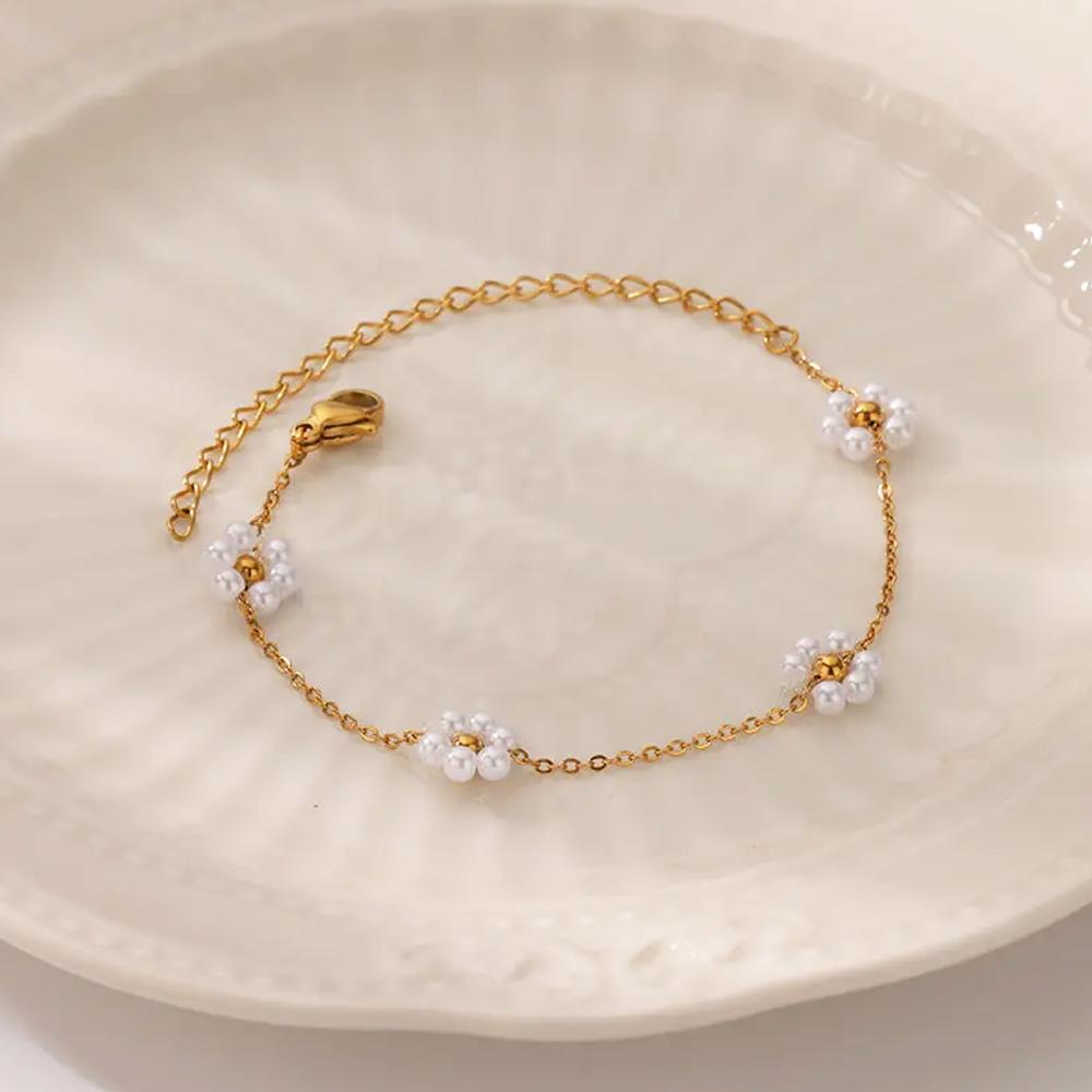 Dainty Imitation Zircon Flower Bracelets for Women Gold Color Stainless Steel Chain Bracelet Wedding Vacation Charm Zircon Gifts