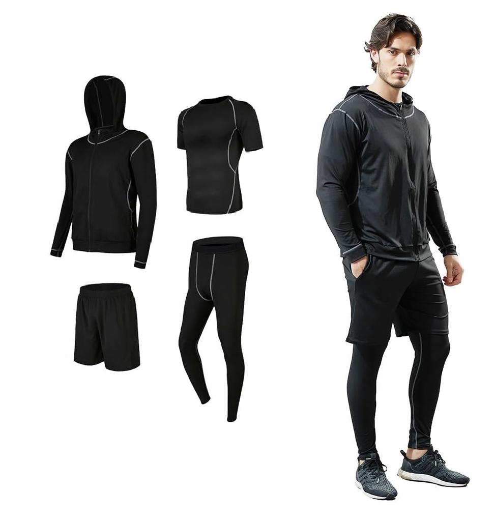 This four-piece set includes a hoodie, short-sleeved T-shirt, shorts, and inner tights, making it a perfect choice for anyone looking to get into sports! It's a great sportswear set that can be worn in all seasons, spring, summer, fall, and winter.