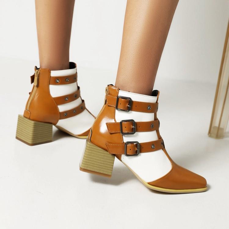 European and American Thick Medium Heel Belt Buckle Rivet Boots Female Martin Boots Short Boots Autumn and Winter