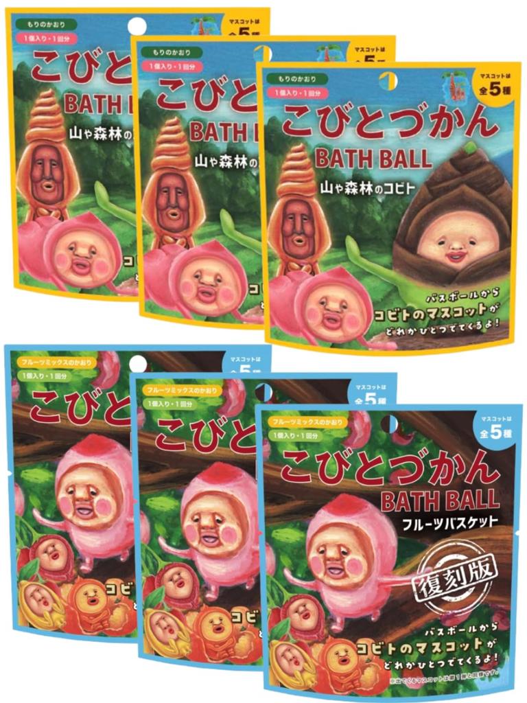 Product contents: "Kobito Zukan Bath Ball Fruits Basket Reprint Edition" x 3 + "Kobito Zukan Bath Ball Mountain and Forest Dwarf" x 3 + Thank you stickers x 6