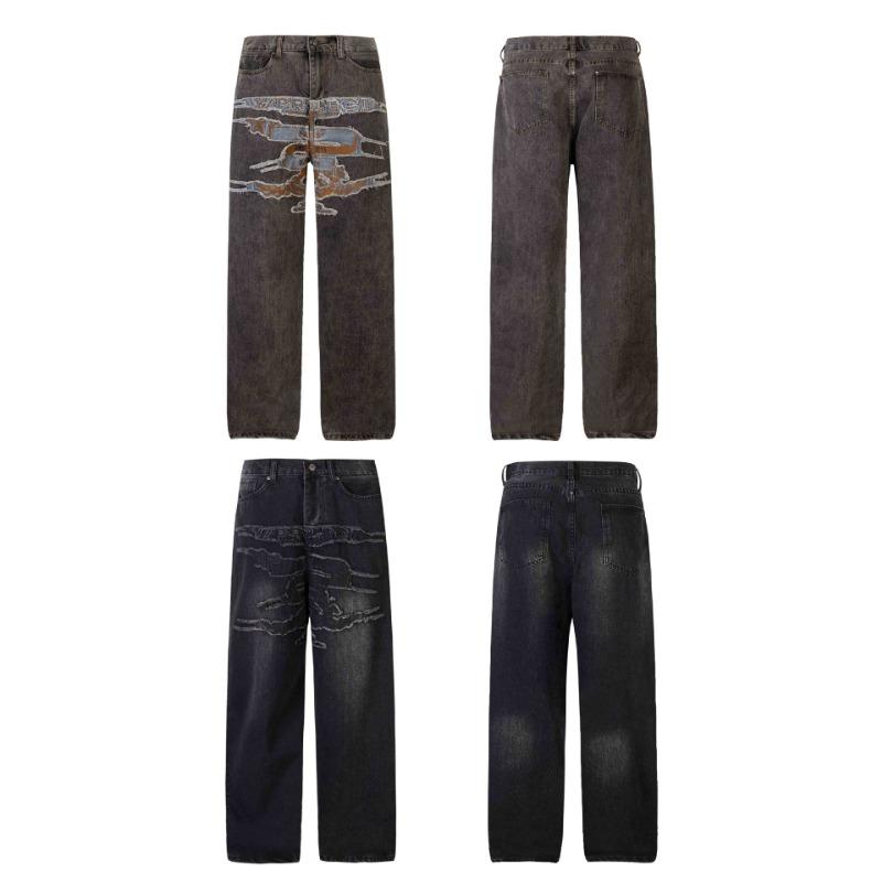 EastRogue Embroidered Denim Jeans, Men's American Washed and Distressed Loose Straight-leg Long Pants, for Both Men and Women.