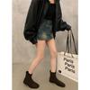 Retro Suede French Small Ankle Boots Women's New Autumn and Winter Low Heel Black Thin Short Martin Boots