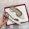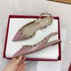 Spring and Summer Rivet Tip One-word Buckle Flat Shoes Bag Head Flat Heel Leather Willow Shoes Cool Slippers Women's Outer Wear