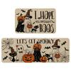 Unique eye-catching design: The top of the non-slip door mat features and polka dot patterns. It not decorates your home in a beautiful and creative way, but also brings a festive Halloween atmosphere to your home. Comfortable kitchen mat: This soft mat has a non-slip recycled rubber backing and a subtle linen top, effectively reducing the risk of tripping. Additionally, this understated mat is made with , high-quality construction that effectively resists stains. Two-piece kitchen carpet set: The package includes one door mat and one long kitchen carpet (one short and one long), making these soft mats (kitchen carpets) the perfect size for the kitchen. Ideal for home decor: Seasonal mats are perfect for indoor kitchens, sinks, living rooms, bathrooms, offices, laundry rooms, entryways, foyers, outdoor areas, porches, patios, garden entrances, terraces, balconies, dining kitchens, and holiday decorations. Simply place it anywhere you like. Add a of colour to decorate your home while protecting your floors. Easy to clean: Cleaning the kitchen rug is quick and convenient; simply spray with a hose or use a sponge and mild detergent to remove dirt. Do not bleach or dry clean. Do not wring dry; allow to dry naturally. Our washable kitchen rugs have been rigorously tested to ensure durability and maintain their shape after washing. Specification: Material: polyester Color: E Size: One Size Package-Includes: