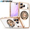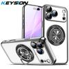 KEYSION Plating Transparent TPU Magnetic Case for MagSafe for iPhone 16 17 Pro Max 17 Air PC Ring Stand Lens Protect Phone Cover