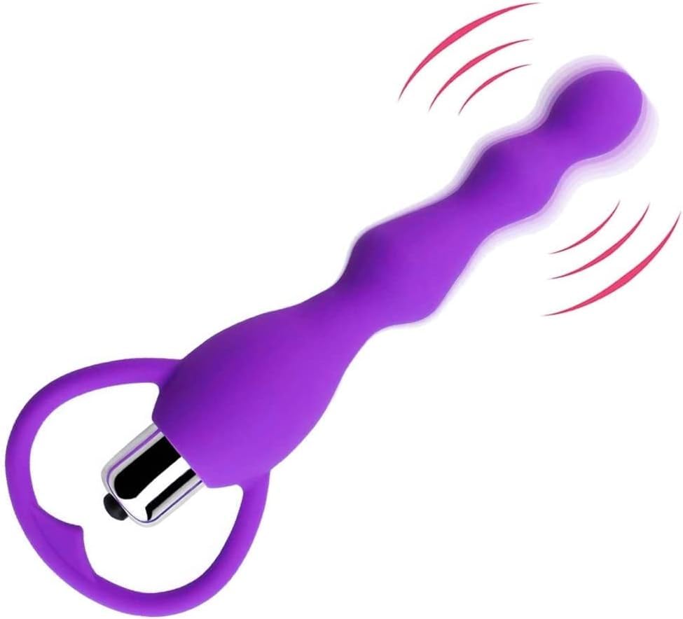 Soft Silicone Vibrating Anal Beads Butt Graded Design Anal Waterproof Anal Sex Toy for and Adult Couples Plug, Vibrator, G-Spot Men, Women, (Purple)