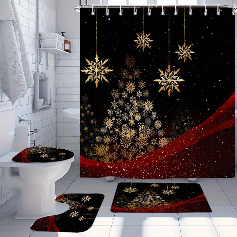 4Pcs Bathroom Shower Curtain Set Elegant Christmas Tree Pattern Bathroom Curtain With 12 Hooks Non Slip Rugs Toilet Cover Mat Bathroom Partition