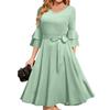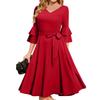 Women's Elegant Bell Sleeve Cocktail Party Dresses For Wedding Guest Fit And Flare Church Midi Evening Dress