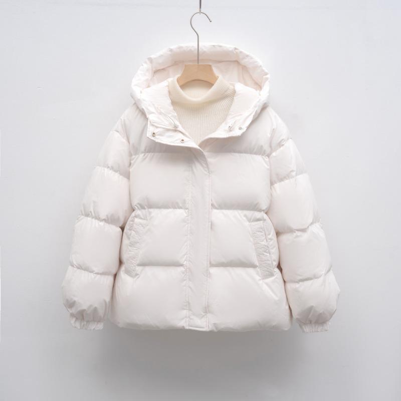 Down Jacket Loose White Duck Down Solid Color Simple Hooded Women's New Winter Warm Thickened Coat Tide