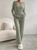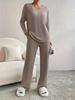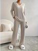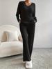 Embrace effortless style with this chic two-piece set designed for the autumn and winter seasons. This ensemble includes a pair of casual straight-leg pants and a loose V-neck ribbed knit top, both crafted from soft polyester for a comfortable and cozy fit. The solid pattern adds a touch of sophistication, making it versatile enough for both casual outings and relaxed indoor settings. Perfect for anyone looking to stay fashionable and comfortable as the temperatures drop.