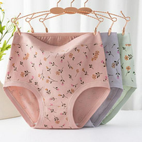 High-Waisted Plus Size Floral Cotton Panties for Middle-Aged and Elderly Women - Comfortable & Antibacterial