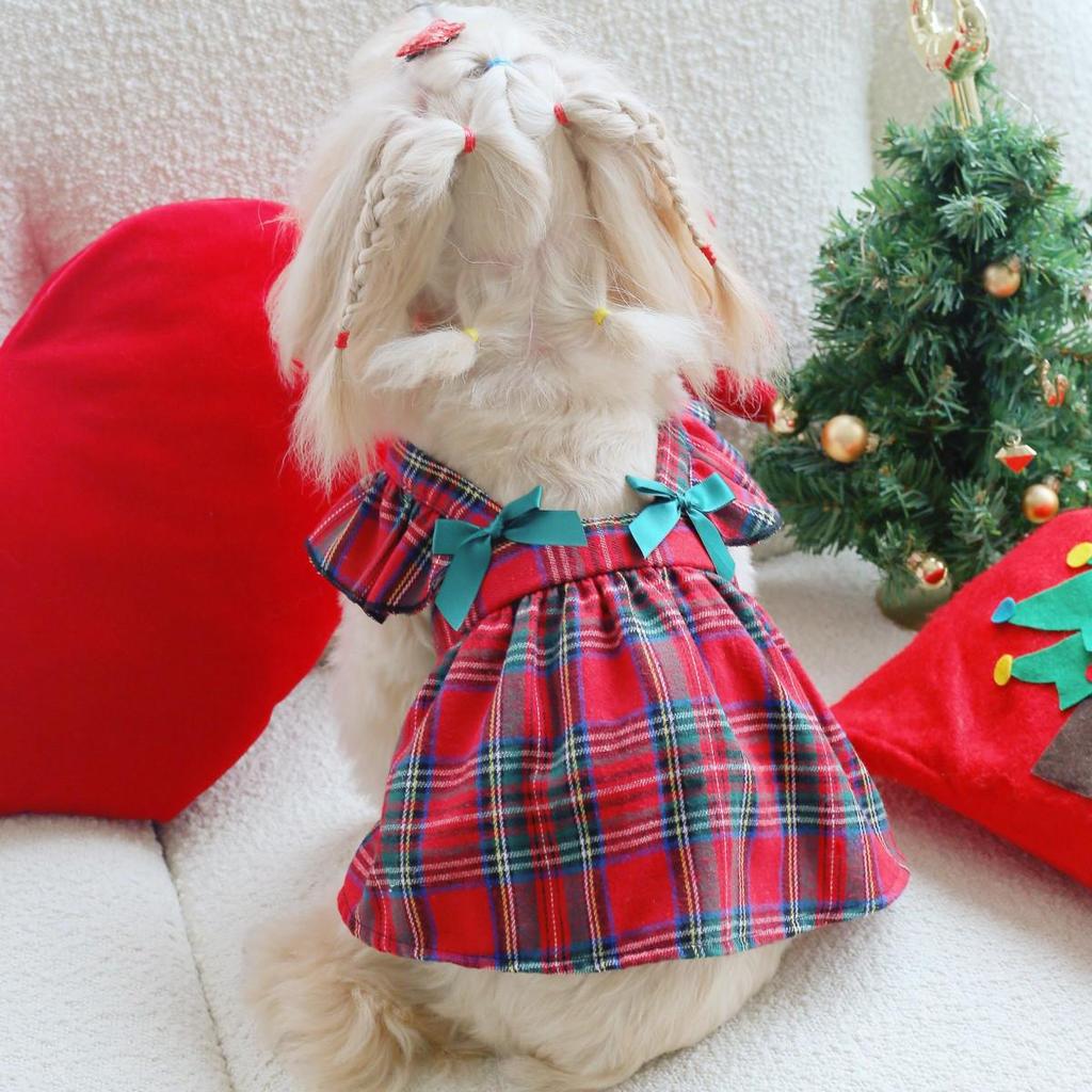 Pet Christmas Dresses: Cute Bowknot Plaid Overalls for Dogs and Cats