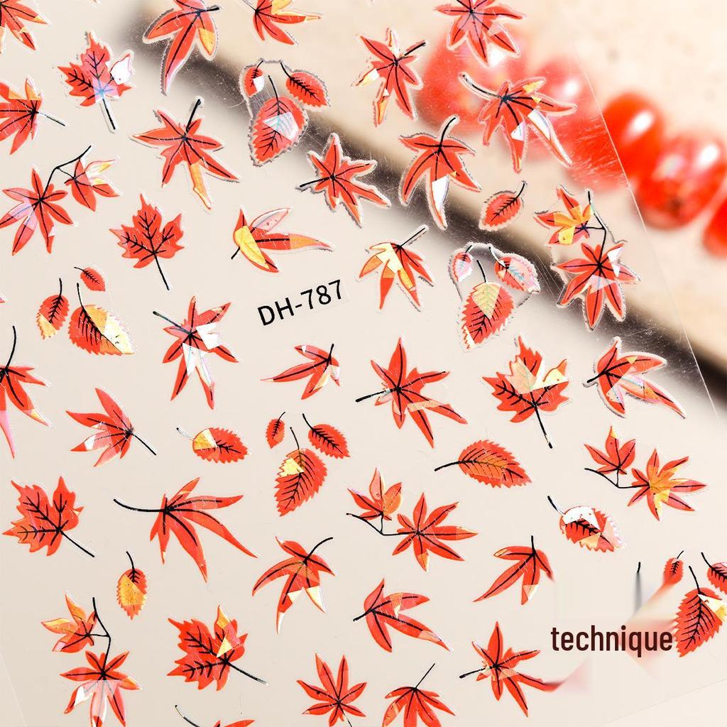 Caramel Red Maple Leaf Adhesive Nail Stickers - Autumn/Winter Fire Red Decor