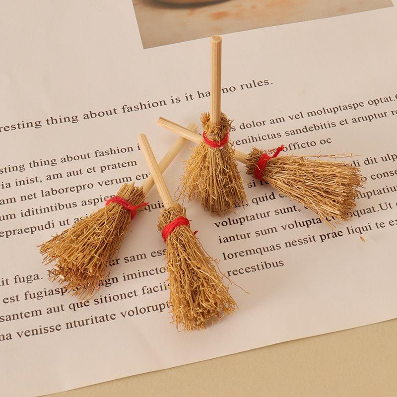 Miniature Dollhouse Broom and Mop Set with Wooden Bucket