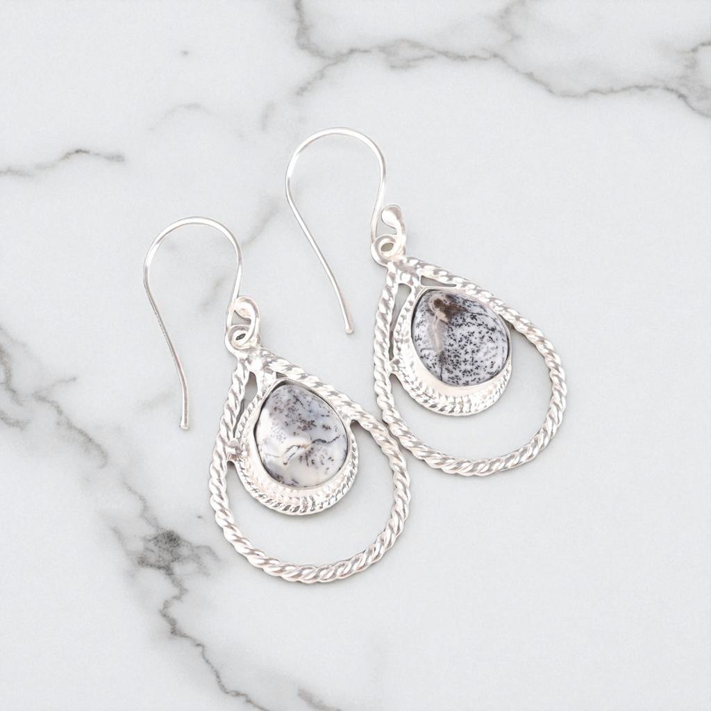 Rare Dendritic Opal Gemstone 925 Sterling Silver Jewelry Handmade Earrings 1.70" EE-96-29