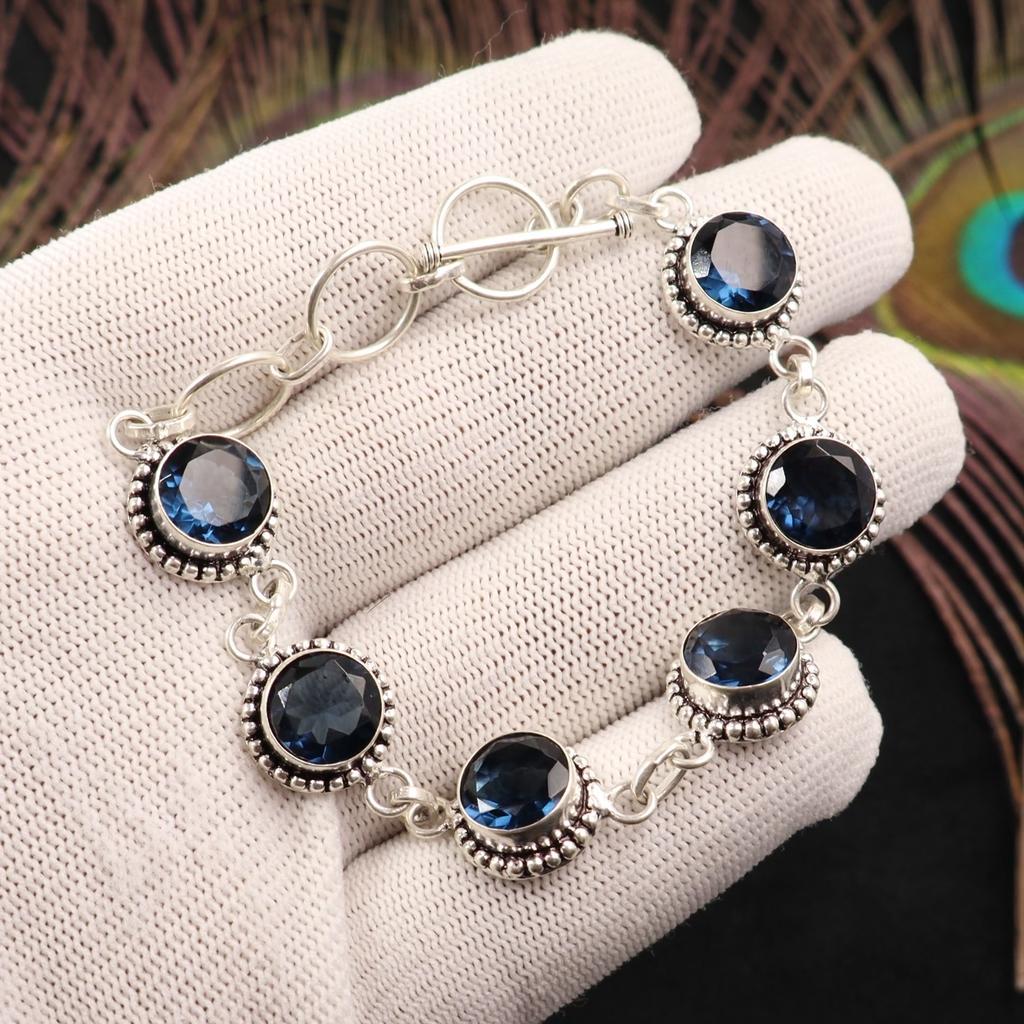 London Blue Topaz Gemstone 925 Sterling Silver Jewelry Handcrafted Bracelet 7-9" RB-17-9