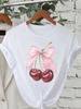 Fashion Cherry Print Women T-Shirt Short Sleeve Crew Neck Casual Tops for Summer Spring Women's Clothing Tops Tees