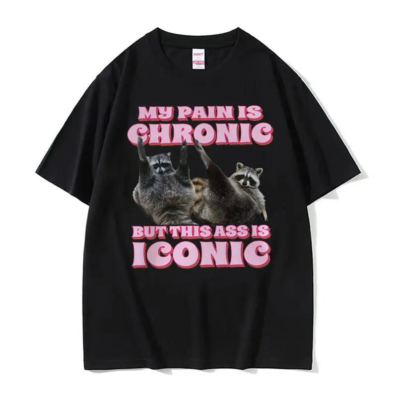 My Pain Is Chronic But This Ass Is Iconic Tee Shirt Funny Raccoon Meme T Shirt Men's Women's Vintage Kawaii Couples T-shirt Tops