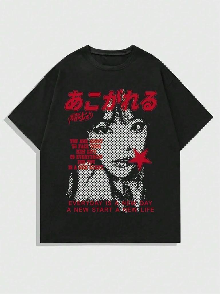 Anime Men's Casual Slogan & Figure Print Round T-shirt Halloween Sport T-shirt Women's Oversized Unisex Summer Outdoor T-shirts
