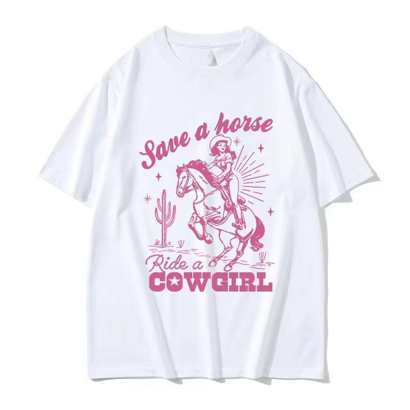 Save A Horse Ride A Cowgirl Print T Shirt Men Women Retro Aesthetic Fashion T-shirts Casual Oversized T-shirt Streetwear