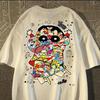 Japanese Retro Street Crayons Small New 100% Cotton Puzzle Print Short-sleeved T-shirt Summer Unisex High Street Trend Korean