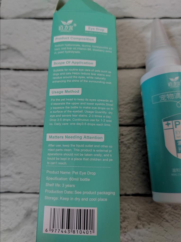 Dorrikey Pet Eye Drops is an eye care product designed for dogs and cats. Help remove dirt, secretions, and other irritants from the eyes, and also reduce tear stains. The formula with natural plant extracts moisturizes dry eyes and relieves irritation, itching, and redness caused by dust, wind, or allergies.. The composition includes honeysuckle, blueberry extract, hyaluronic acid, purified water and other plant components. Application: The drops are suitable for both dogs and cats of all breeds and sizes. It is recommended to apply 1-2 drops in each eye twice a day.