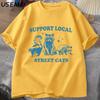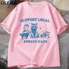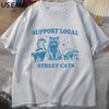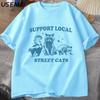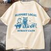 Support Your Local Street Cats Retro T Shirt Funny Raccoon T-Shirt Streetwear Animal Cat Lover Graphic T Shirts Mens Clothing