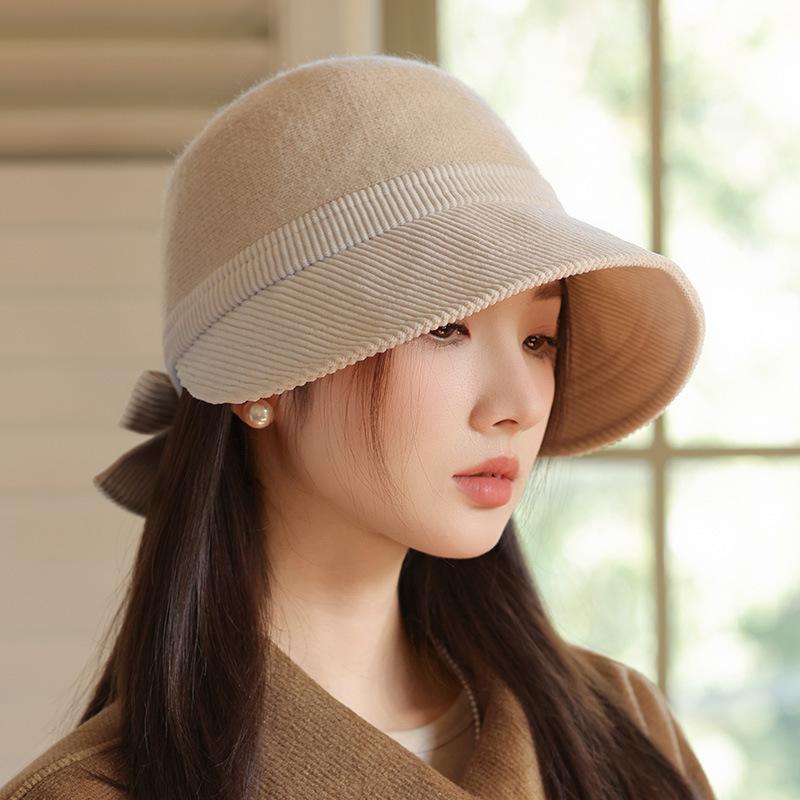 Korean Version of Autumn and Winter New Hat for Women with Big Brim Showing Face Small Duckball Cap Casual Versatile Dome Hat Bow Basin Hat