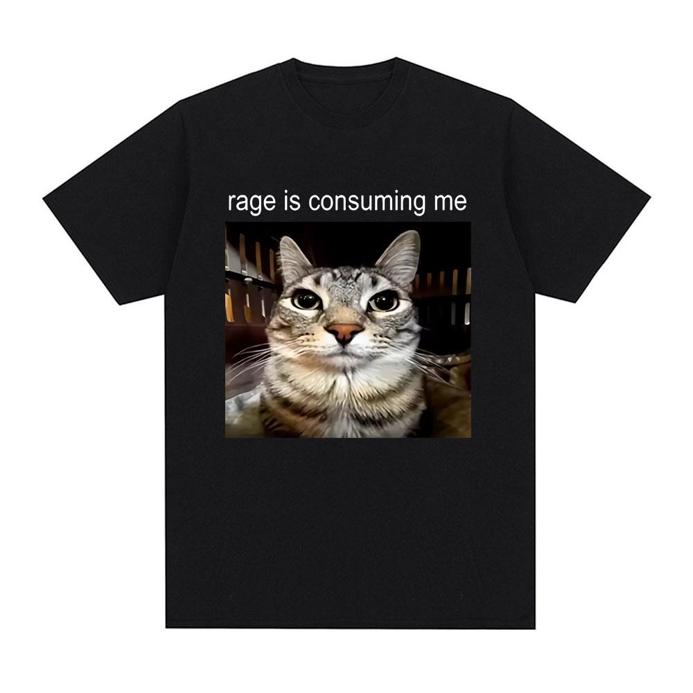 Rage Is Consuming Me Silly Staring Cat Meme Tee Shirt Casual Cotton Short Sleeve T-shirts Men Women Cat Lover T Shirt Oversized