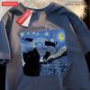 Oil Painting The Starry Cat Night Tshirt Men Women Casual Breathable Summer Tshirts Oversized Loose T Shirt Cotton Clothing