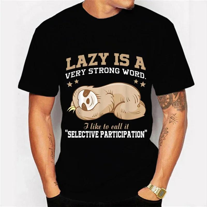 Funny Lazy Sloth Men's T-shirts Lazy Is A Very Strong Word Graphic Tee Shirt Men Short Sleeve Tshirt Top Vintage Hip Hop T Shirt