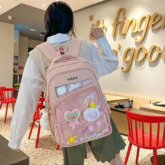 School Bag New School Bag Female Korean Version Ins Wind Two-dimensional Transparent Bar Pain Bag Multi-compartment Middle and High School Student