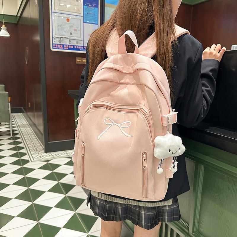 School Bag Solid Color Cute Bow Backpack New High Value Junior High School Student School Bag Commuting Travel Versatile Backpack