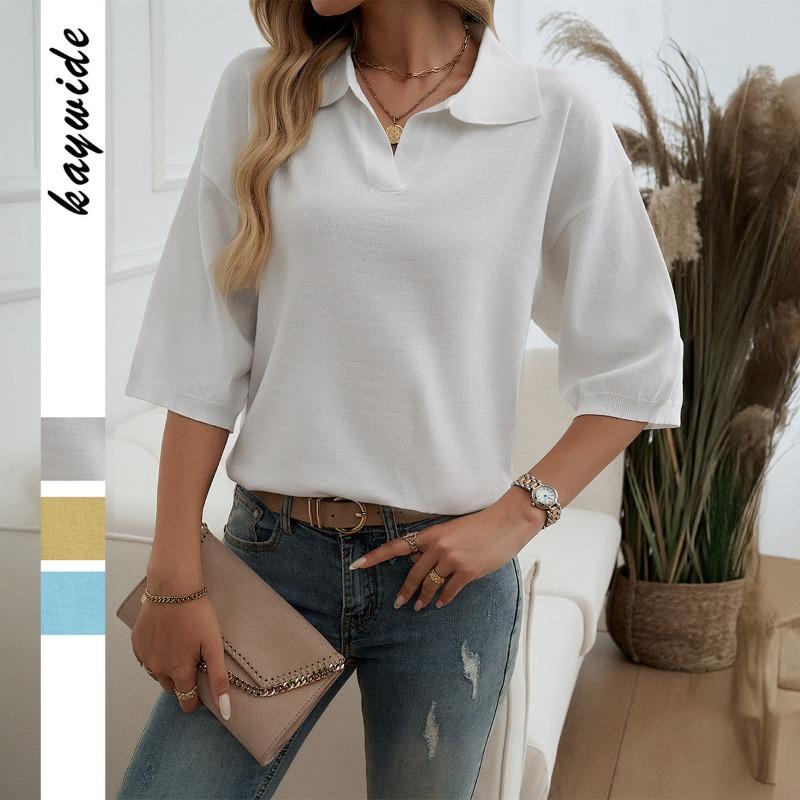 Vacation and Casual Style POLO Wool Shirt Women's Spring and Summer Lapel Long Sleeve Versatile Top