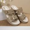 Thick-soled Slippers Women's New Wedge Heel Belt Buckle Decoration Large Size Fish Mouth One-word Slippers