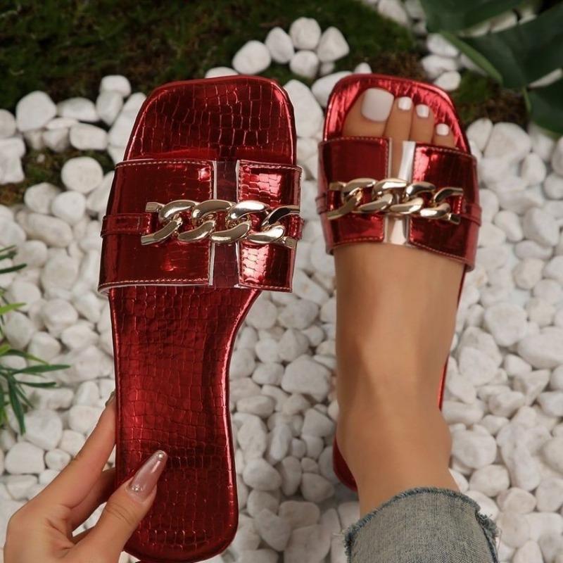 New Slippers Women's Summer New Large Size Flat Bottom Square Head Fashion Cool Slippers Women's Outer Wear