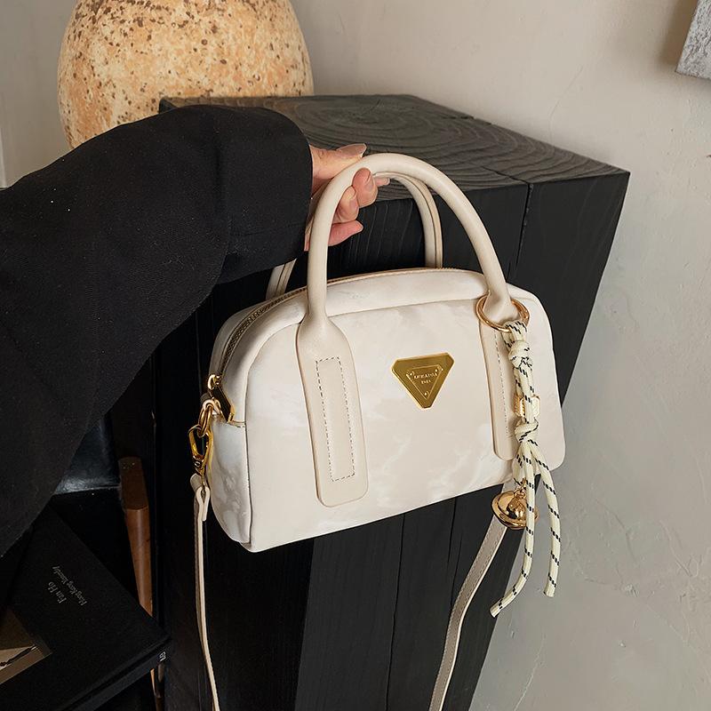 Stylish PU Handbag with Pendant Option: Crafted from PU with a sleek, structured silhouette and a triangular logo accent. Available with a decorative pendant or without. Designed for single - shoulder or cross - body wear. Ideal for adding a chic, trendy touch to daily outings, work, or casual events.