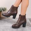 Low Tube High Heel Women's Boots Autumn and Winter Wear Thick Heel Waterproof Table Lace-up Large Size Martin Boots