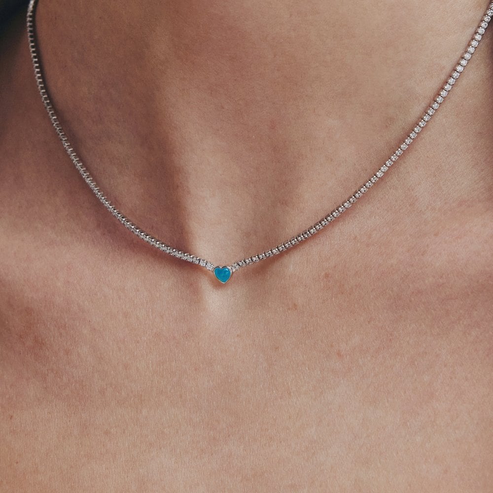 Essence Silver (W) Tennis Heart Necklace In Turkish Blue New Hl4N46400W9420
