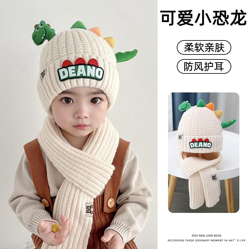 New Children's Hat Scarf Two-piece Set Cute Little Dinosaur Warm Knitted Wool Hat Outdoor Children's Pullover Hat