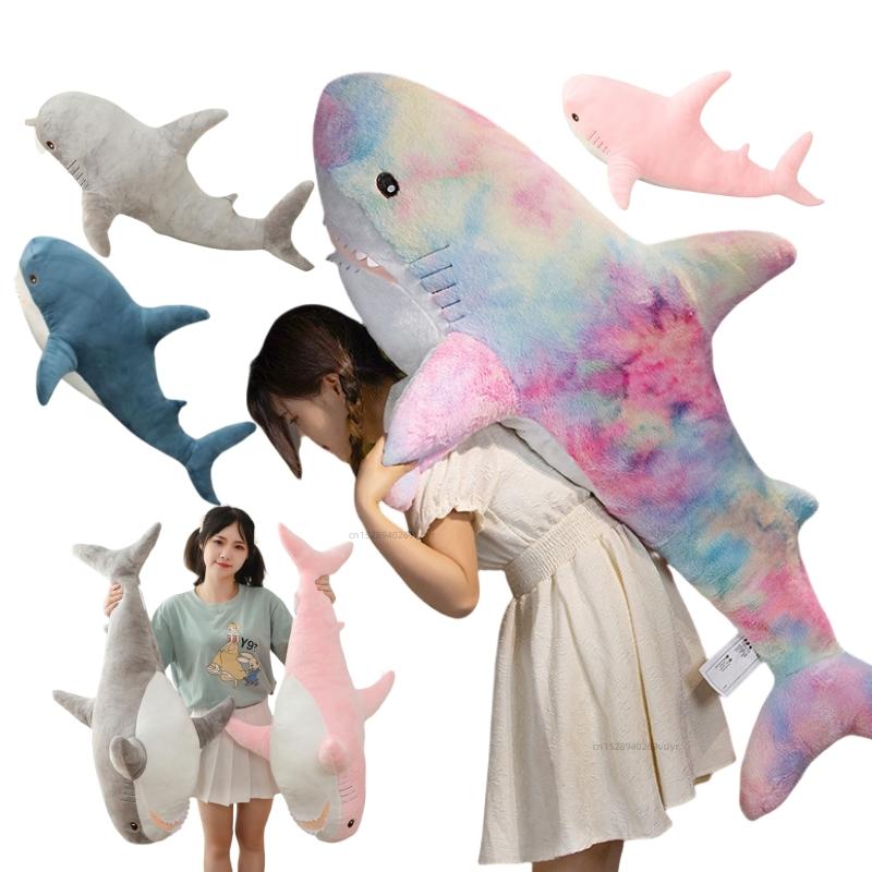 Simulated Shark Marine Organism Blue Pink Grey Fish Toy Soft Dolls Cartoon Pillow Bed Decor Birthday Gift for Girls Boys