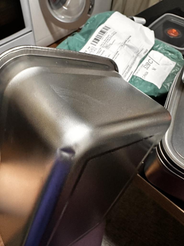 Good container. A bit thin. And, there's a small dent.