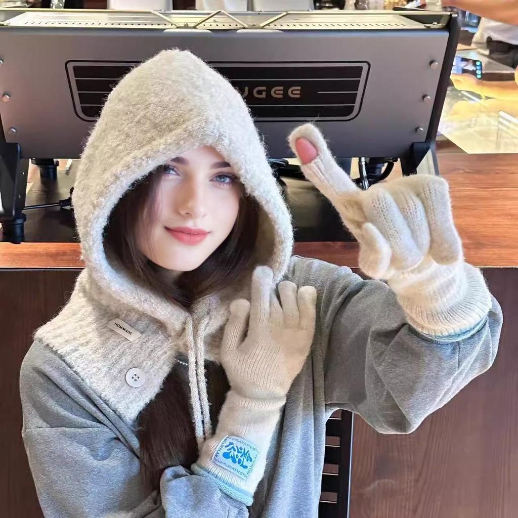 Korean Version of Balaclava Women's Autumn and Winter Hat Scarf Integrated Fashionable and Versatile Knitted Warm Ear Protection Hat