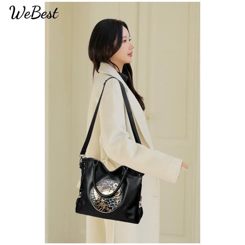 Vintage Chinese Style Elegant Shoulder Bag Women Fashion Euro-American Tote Bag Premium Soft Dough Bag Women