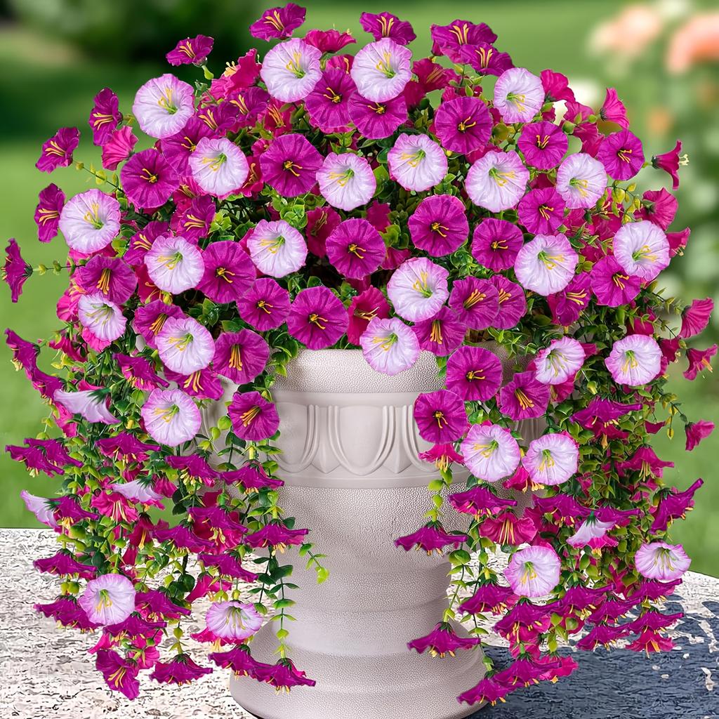 2pcs UV-Resistant Artificial Hanging Petunia & Eucalyptus Flowers , Weatherproof, Indoor/Outdoor Decor for Weddings, Porch, Patio, Garden Decorations