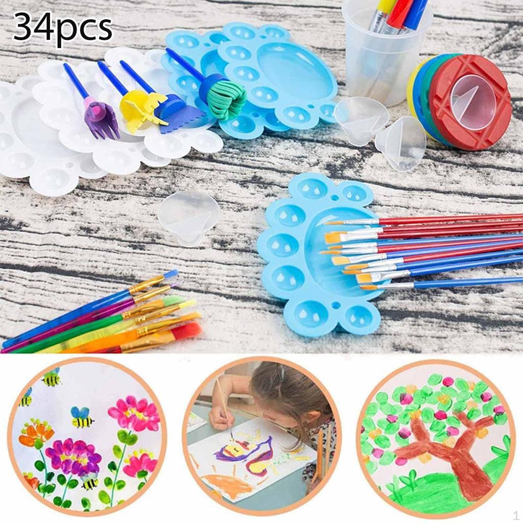 - 【Package Quantity】: This paint supplies for kids include 4 paint cups with lids for kids and 24 paint brushes and 6 palette trays, enough quantity to meet the art class need at home and school