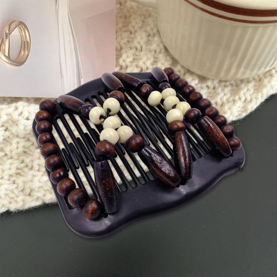 1/4Pcs Women Wooden Beaded Hair Combs Handmade Stretch Double Side Clips Salon Combs Bun Maker Hair Accessories