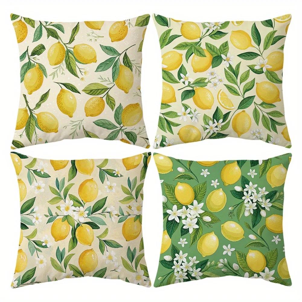 Refreshing Lemon - Floral Delight Pillow CoversLiving Room Sofa Cushion Cover, Soft and Comfortable, Bedroom Room Decoration